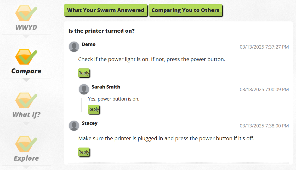 Each Case Swarm experience focuses you on answering questions, some crafted by the case author. Social learning as you access and give feedback to the opinions of your peers – but only after you've had your say!